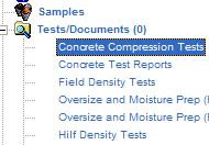 There are two main documents (screens) for concrete testing in QESTLab - the concrete sample group document and the concrete sample document.