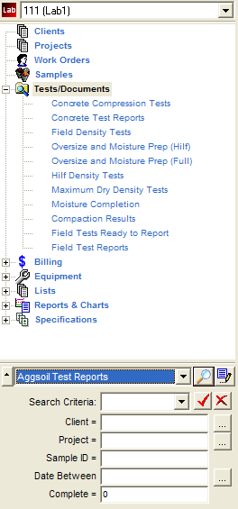 Tests/Documents Select the tests/documents node to search for tests, test reports, or documents other than work orders or samples. Expand this node to see the filters that can be used to search for various documents in QESTLab.