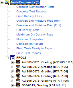 Remember the Tests/docs area in the QESTLab tree, that had filters that allowed you to search for particular soils tests that needed doing. Well, similarly there are filters that can be used to find grading tests, CBRs, Atterbergs and the like, that need doing. Remember that these filters are added by your QESTLab administrator. If the filter you need isnt there your system administrator may be able to add it for you.