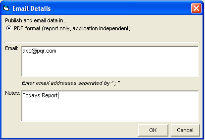 Click the Publish Report button to save the report as a .PDF file. Enter the email address and add notes if desired.
