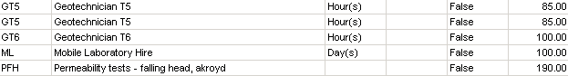 The fields in each locally maintained list are described below. Some fields are completely optional, or were created specifically for other users of QESTLab, and are not relevant for Coffey Geotechnics.