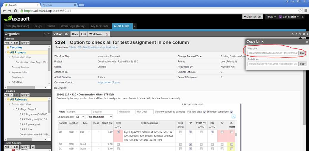 If you search for an item via the Audit Trails tab, view it and then try to copy the Web Link then the web link that is generated is incomplete. The {id} and {type} tags aren't replaced with the actual values.