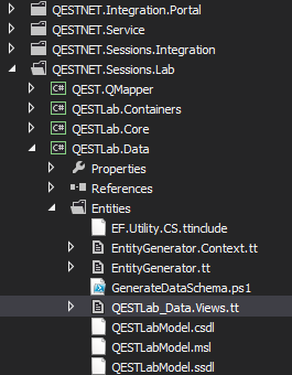 - Include QESTLab_Data_Views.tt. If you cannot see this file, click the "Show All Files" button on the Solution Explorer toolbar.